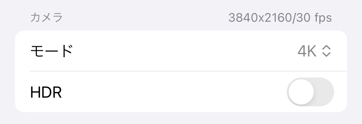 アプリの設定からカメラの「モード」・「HDR」の設定ができます。