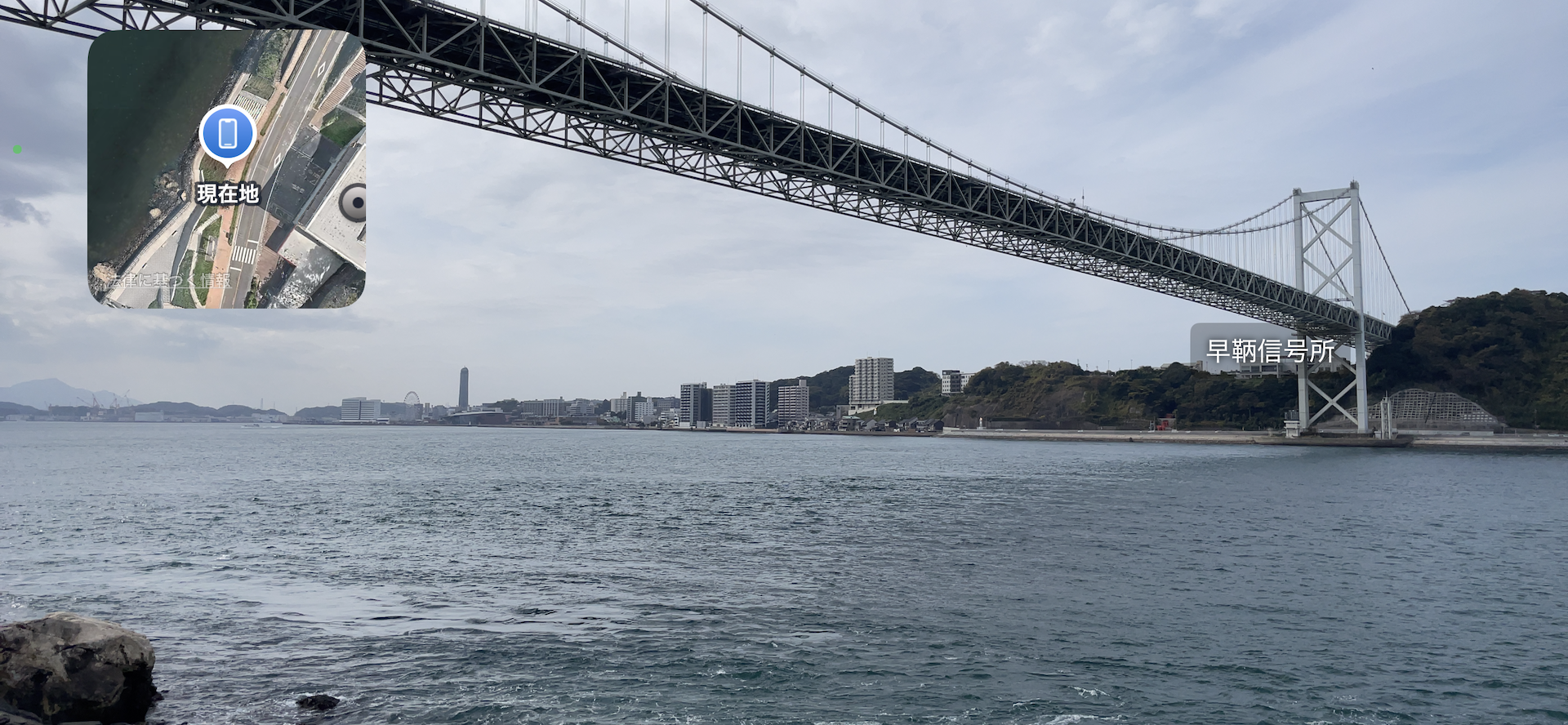 北九州市の関門海峡に面した場所のうち、Apple®「マップ」アプリ「Look Around」機能に対応した道路周辺。 -