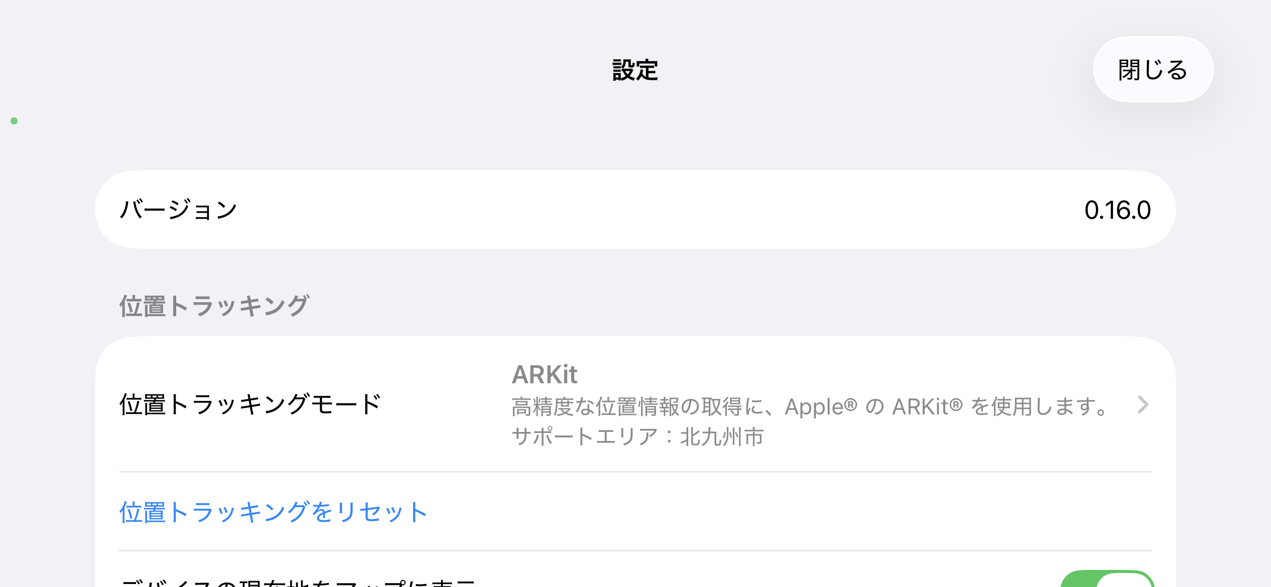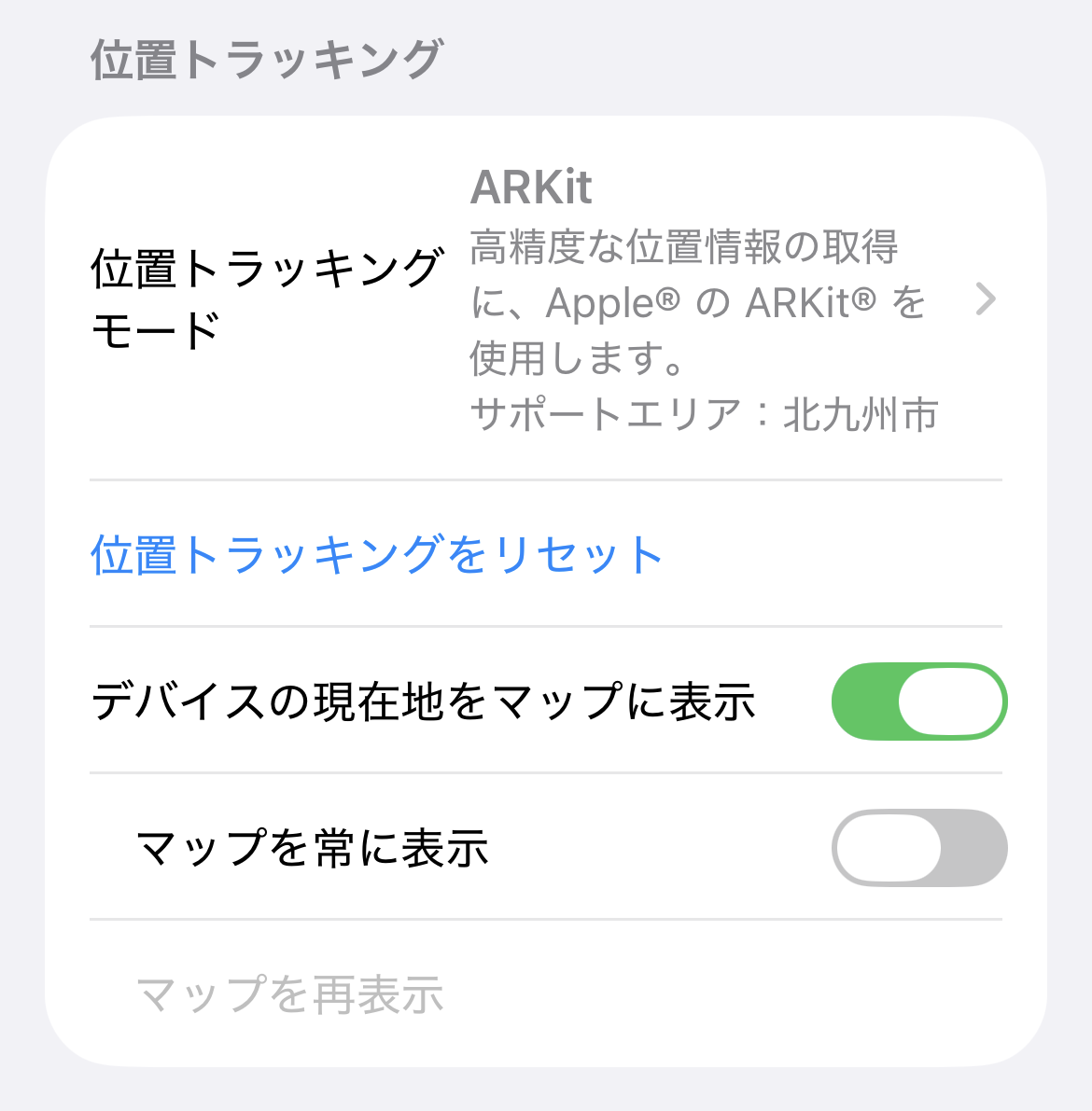 スキャンが成功しない場合は、現在の位置を確定するためのスキャンについて を参考にしてみてください。位置トラッキングモード:ARKit